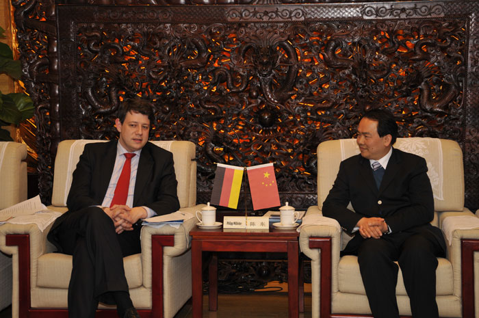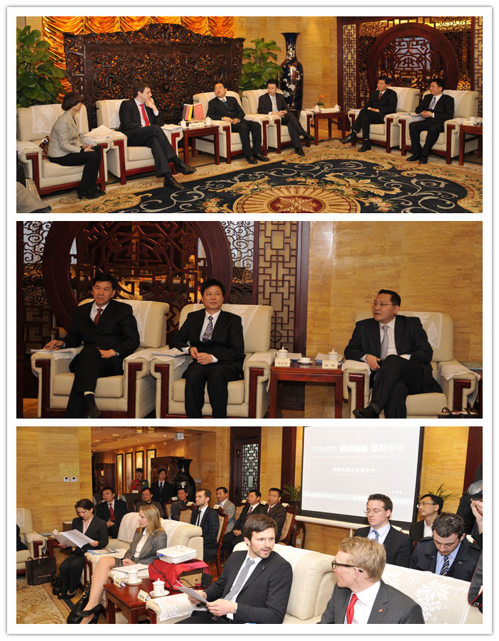 4月10日下午,陳東市長率領(lǐng)揭陽市金屬聯(lián)合會企業(yè)家代表團(tuán)與德國基民盟主席團(tuán)成員、德國聯(lián)邦議院聯(lián)盟黨黨團(tuán)外交政策發(fā)言人、德國青年聯(lián)盟主席菲利普·米斯菲爾德先生率領(lǐng)的德國基民盟企業(yè)家代表團(tuán)在北京進(jìn)行會談。