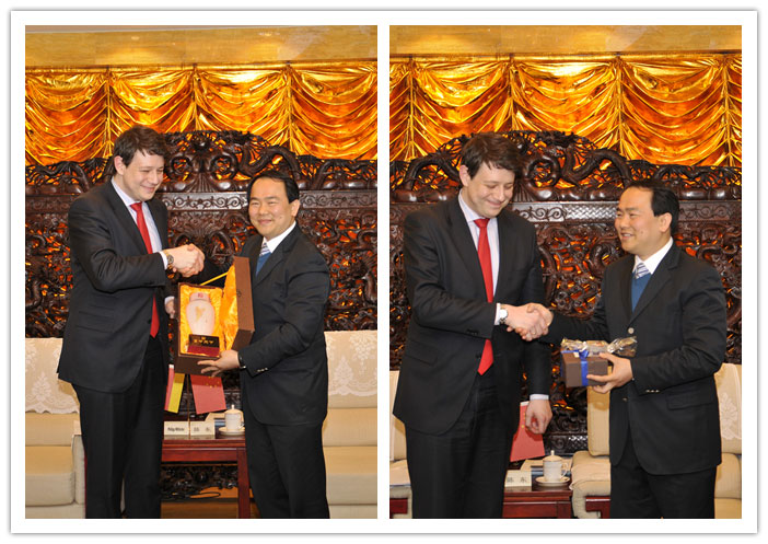 陳東市長對米斯菲爾德及德國企業(yè)家代表來華考察訪問表示歡迎,高度贊賞米斯菲爾德在推動中德合作和中德友誼上做出的突出貢獻(xiàn)。陳東市長表示,德國是工業(yè)發(fā)達(dá)、科技先進(jìn)的國家,在循環(huán)經(jīng)濟(jì)、生態(tài)環(huán)保及城市建設(shè)等方面有許多創(chuàng)新舉措和成功經(jīng)驗,值得我們學(xué)習(xí)和借鑒,在向德國代表團(tuán)詳細(xì)介紹了揭陽市基本情況以及中德金屬生態(tài)城項目在與德方共建產(chǎn)業(yè)大學(xué)、研究院、工業(yè)設(shè)計院和品牌推廣平臺上的實質(zhì)性進(jìn)展后,陳東市長向米斯菲爾德發(fā)出帶團(tuán)考察揭陽進(jìn)一步深度合作的邀請。米斯菲爾德對陳東市長的熱情接待表示感謝,并表示他多次來華考察訪問印象都非常深刻。在聽完陳東市長介紹中德金屬生態(tài)城項目后,米斯菲爾德表示揭陽擁有很好的金屬產(chǎn)業(yè)基礎(chǔ),希望雙方能就金屬生態(tài)城建設(shè)展開合作,并對陳東市長發(fā)出訪問揭陽的邀請表示感謝,在德國大選過后他將率團(tuán)訪問揭陽,共同探討和深度推進(jìn)德國企業(yè)與揭陽企業(yè)的深度合作。