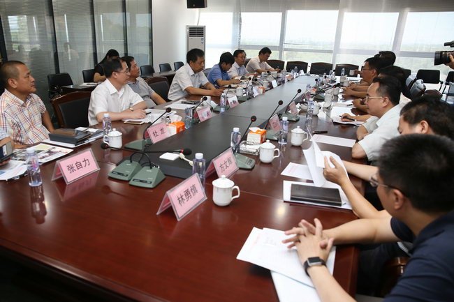 周孟波一行與陳澄民等市領導在空港經(jīng)濟區(qū)建立倉儲物流中心進行座談