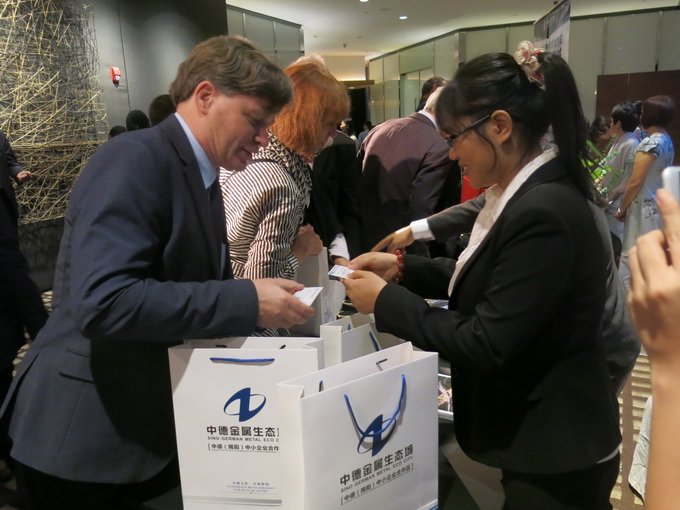 10月12日,受德國駐廣州領(lǐng)事館的邀請,中德金屬集團副總裁晉衛(wèi)東攜集團招商、營銷等部門主要人員參加了德國統(tǒng)一25周年德國國慶日活動;顒蝇F(xiàn)場來自中德兩國的各個協(xié)會、機構(gòu)及企業(yè)代表借藝術(shù)形式進行商務、文化交流。作為華南區(qū)首個中德中小企業(yè)合作區(qū),中德金屬生態(tài)城項目一直以來得到了德國駐廣州總領(lǐng)館的大力支持。呂海慕總領(lǐng)事在致辭中提出,希望能進一步促進中德之間的合作,對揭陽的中德合作成果表示充分肯定。廣東省政府副秘書長羅娟參加了活動并致辭,她提出,廣東省政府將繼續(xù)支持中德金屬生態(tài)城這一中德合作平臺,促進廣東與德國的合作。